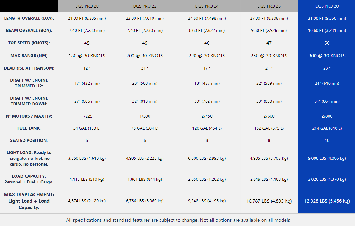 The largest and most powerful in our lineup, DGS Pro 30 is designed to handle the most demanding demands of maritime operations. With the ability to carry heavy equipment and larger teams, it is the preferred choice for disaster response missions, port security, and support for organized crime combat operations.